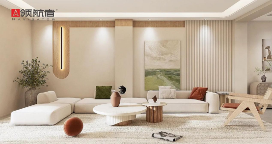 客廳·歡聚主場:團圓時刻,客廳是情感交匯的核心。領(lǐng)航者家居定制的一體化電視背景墻與儲物柜,精選自然紋理板材,色澤溫潤雅致,既煥升空間整體格調(diào),又能巧妙收納日常雜物,為每一次歡聲笑語留出整潔寬敞的天地。