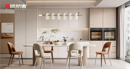 餐廳·品味時光:圓月映窗,美食滿桌,餐廳是團圓宴飲的溫情據(jù)點。領(lǐng)航者家居定制的餐桌椅與餐邊柜,兼顧材質(zhì)堅固與線條圓融——所選板材耐磨耐劃、易清潔打理,即便聚餐再熱鬧,也能從容應(yīng)對。