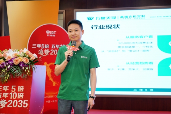 旺德府家居集團新零售定制業(yè)務(wù)中心聯(lián)席總經(jīng)理李寄羅先生深度拆解行業(yè)困局破解路徑,重點講解萬象天冠高端衣柜定制的核心競爭優(yōu)勢,同時系統(tǒng)闡釋了個人代理模式的運營邏輯與配套政策支持。
