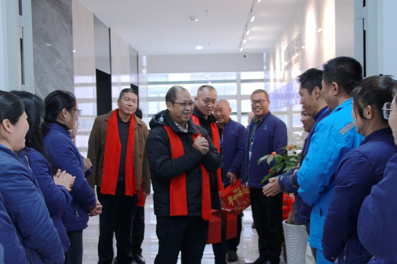 “過(guò)年好,給大家拜年了!”“祝大家身體健康,工作順利!”每到一處,高管團(tuán)隊(duì)們便為大家送上新春祝福?!斑^(guò)年回家了嗎?”同時(shí),領(lǐng)導(dǎo)們?cè)儐?wèn)起大家過(guò)年情況和生活狀況,親切地與大家嘮起家常。